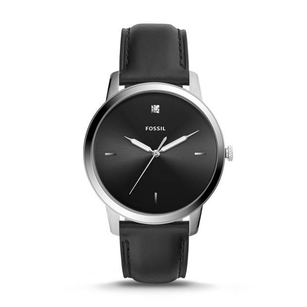 This 44mm Minimalist features a black satin dial with a genuine diamond at the 12-hour marker, three-hand movement and black leather strap Read more